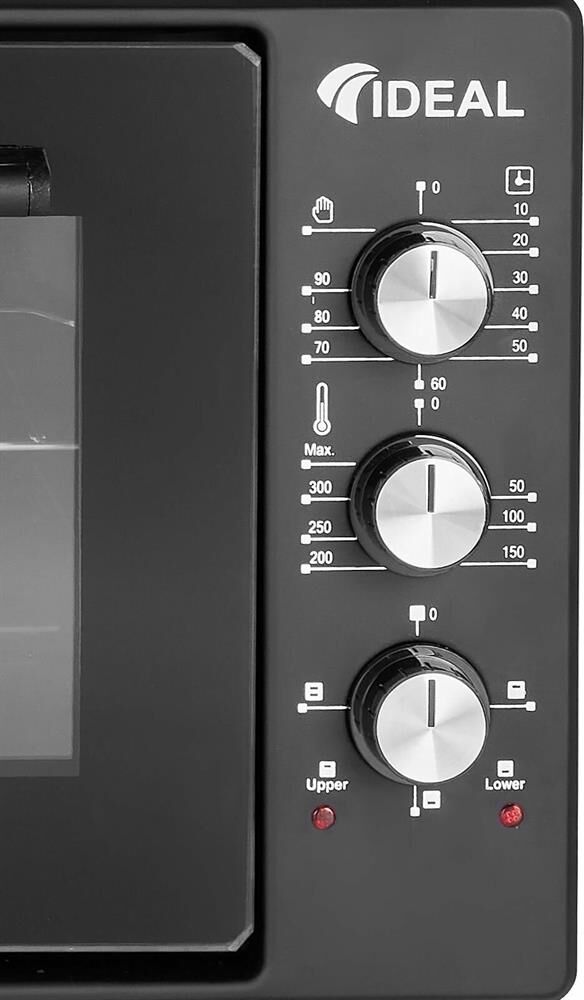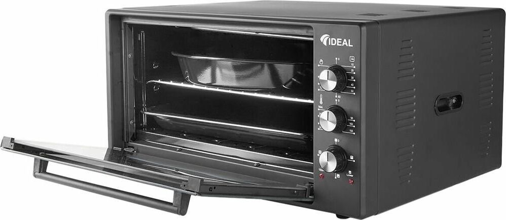 Объем духовки - 50 литров; Потребляемая мощность - 1600 ВТ; Режимы работы - Верхний + нижний нагрев, Верхний нагрев, Нижний нагрев Таймер - Звуковой, с отключением; Управление мини-печью - Механическое; Внутреннее покрытие – Эмаль; Макс. Температура - 300°С; Количество режимов работы – 3; Тип питания – Электрический; Гарантийный срок - 1 год; Страна-изготовитель – Узбекистан; Тип - Мини-печь; Системы защиты - Автовыключение; Бренд - IDEAL; Цвет – Черный; Количество стекол дверцы духовки – 2; Размеры 580*290*440 мм; Вес товара 16000г.