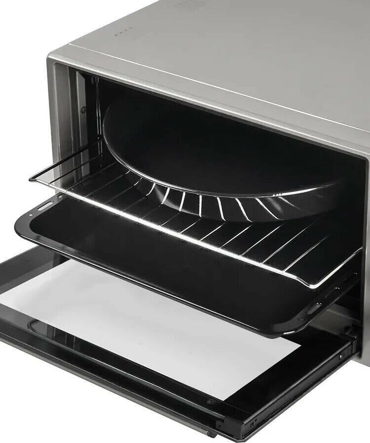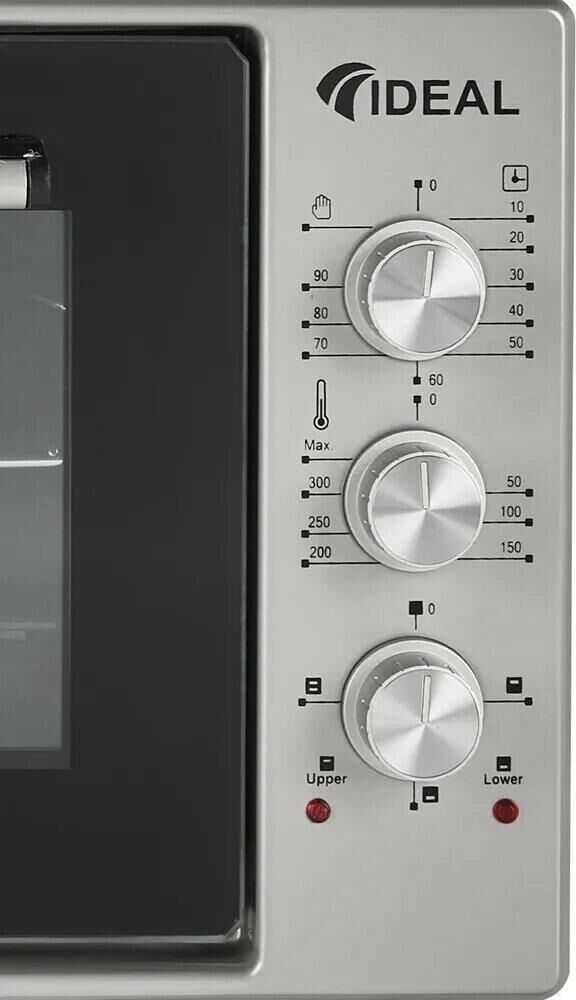 Объем духовки - 50 литров; Потребляемая мощность - 1600 ВТ; Режимы работы - Верхний + нижний нагрев, Верхний нагрев, Нижний нагрев Таймер - Звуковой, с отключением; Управление мини-печью - Механическое; Внутреннее покрытие – Эмаль; Макс. Температура - 300°С; Количество режимов работы – 3; Тип питания – Электрический; Гарантийный срок - 1 год; Страна-изготовитель – Узбекистан; Тип - Мини-печь; Системы защиты - Автовыключение; Бренд - IDEAL; Цвет – Серый; Количество стекол дверцы духовки – 2; Размеры 580*290*440 мм; Вес товара 16000г.