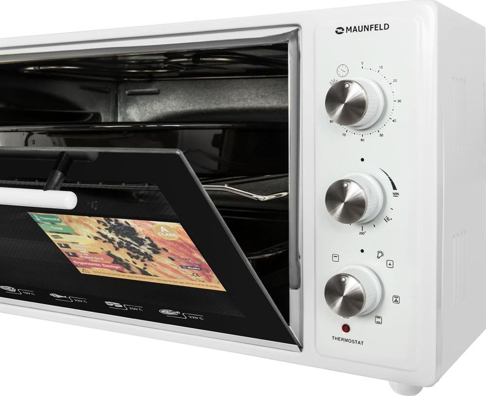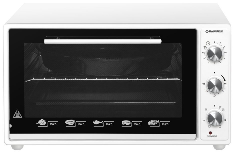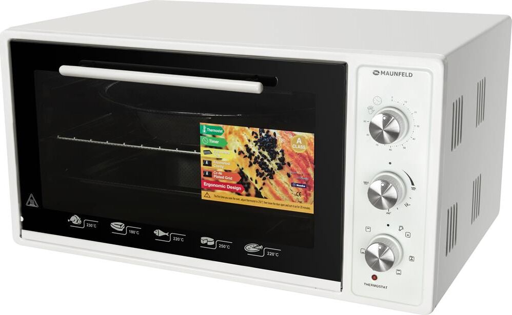Гриль - есть; Комфорки сверху - нет; Конвекция - есть; Мощность,Вт - 1500; Объем л. - 45; Таймер - есть; Цвет - белый;
