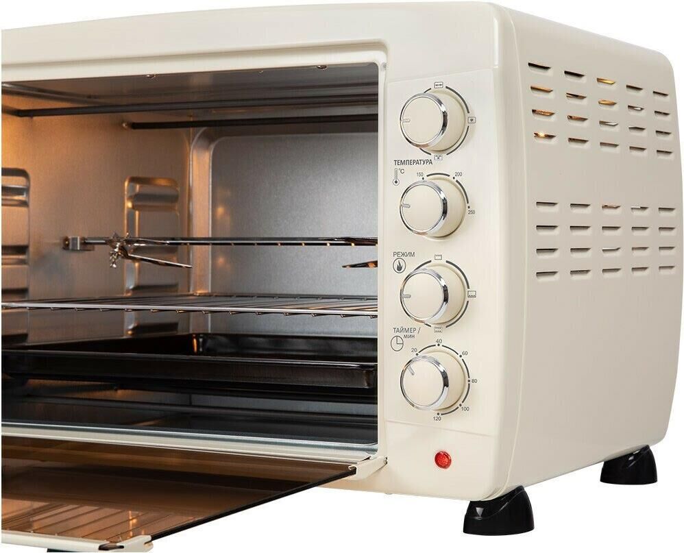 Тип: электрическая; Тип: мини-печь; Объем камеры: 45 л; Максимальная потребляемая мощность: 2000 Вт; Конфорки: нет; Минимальная температура нагрева: 100 °C; Максимальная температура нагрева: 250 °C; Управление: механическое