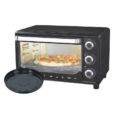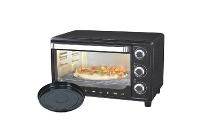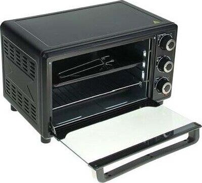 27л, духовка 1500Вт, механ.управление, 3 режима работы духовки (верх, низ, верх+низ), таймер на 60 минут, регулировка температуры духовки, комплектация - металлическая решетка, противень, круглая форма для выпечки (230x50мм), ухват. Цвет: чёрный.
