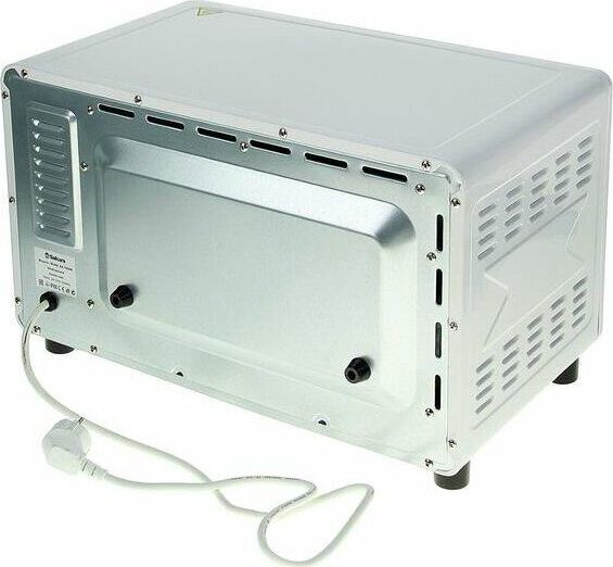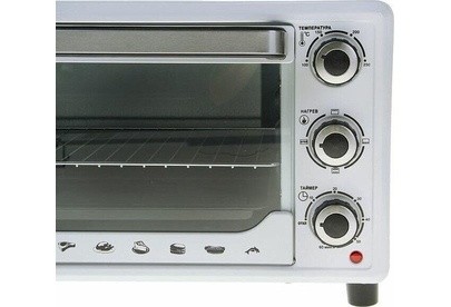 27л, духовка 1500Вт, механ.управление, 3 режима работы духовки (верх, низ, верх+низ), таймер на 60 минут, регулировка температуры духовки, комплектация - металлическая решетка, противень, круглая форма для выпечки (230x50мм), ухват. Цвет: белый.