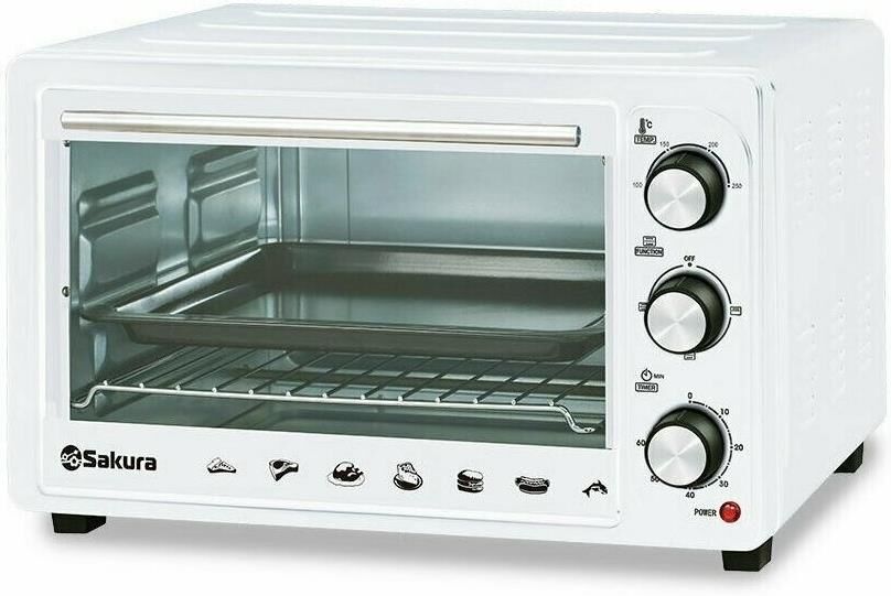 Объем 30л, мощность духовки 1500Вт, механическое управление, 3 режима работы духовки (верх, низ, верх+низ), таймер на 60 минут со звонком, регулировка температуры духовки, комплектация - металлическая решетка, противень и ухват.