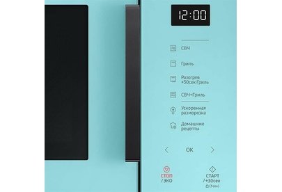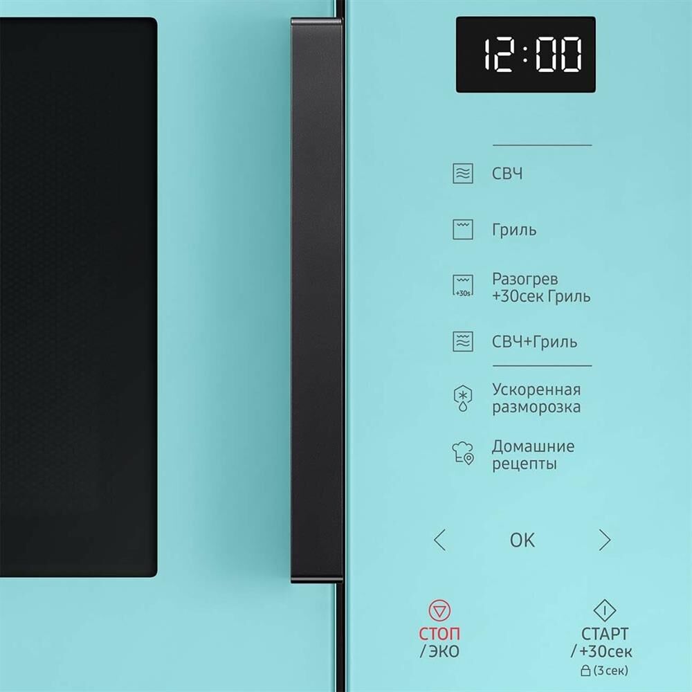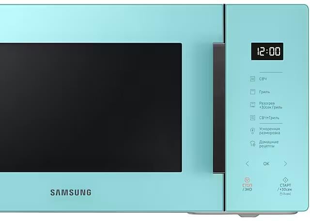 Печь микроволновая с грилем SAMSUNG MG-23T5018AN/BW, 800Вт, 23л, мятный /черный