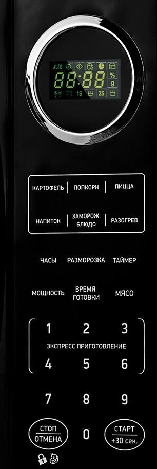 Объем камеры (л) 23 Тип управления электронный Мощность микроволн (Вт) 900 Диаметр поворотного стола (мм) 270 Материал поворотного стола стекло Внутреннее покрытие эмаль Тип открывания дверцы ручка Внутреннее освещение Да Звуковой сигнал Да Таймер (мин) 95 Кол-во ступеней мощности (шт) 10 Микроволны Да Цифровой дисплей Да Светящиеся символы дисплея Да Автоматич. приготовление Да Автоматич. размораживание Да Функция разморозки Да Поэтапное приготовление Да Встроенные часы Да Режим защита от детей Да Таймер со звуковым сигналом Да Класс электробезопасности 1 Энергопотребление в рабочем режиме (Вт) 1400 Входное напряжение питания (В/Гц) 220-230(50) Наличие заземляющего контакта на вилке Да