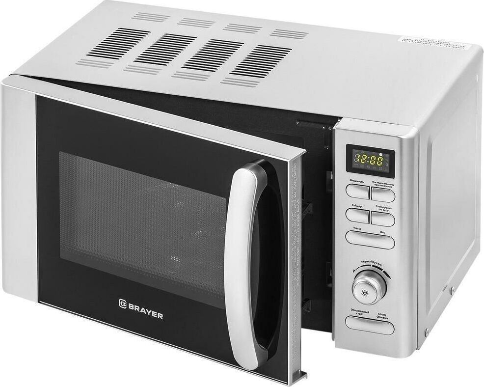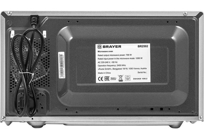 Внутренний объём: 20 л. Цифровое управление. Номинальная микроволновая мощность: 700 Вт. 6 уровней мощности. Блокировка кнопок для безопасности. Разморозка по времени и по весу. Программирование последовательного приготовления. LED-дисплей. Электронные часы. Таймер до 95 минут. Сигнал завершения приготовления. Стеклянное вращающееся блюдо: O 245 мм. Номинальная потребляемая мощность в режиме микроволн: 1200 Вт. Защита от поражения электрическим током: I класс. Рабочая частота: 2450 МГц. Габаритные размеры: 262*452*349 мм. Масса нетто: 10,8 кг. Электропитание: 220-240 В, ~50 Гц.