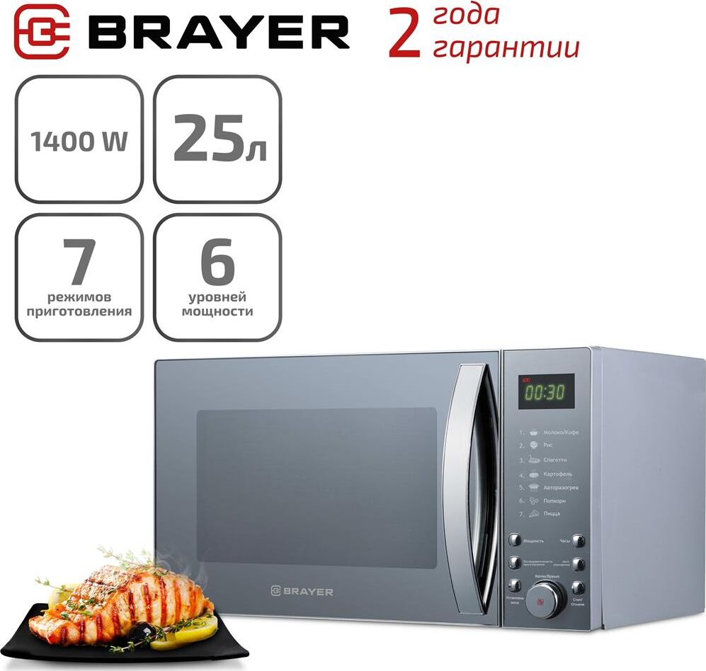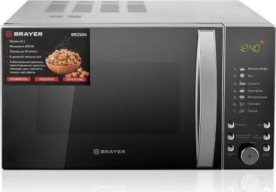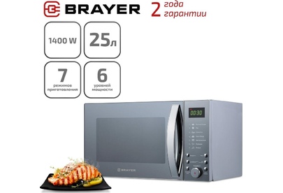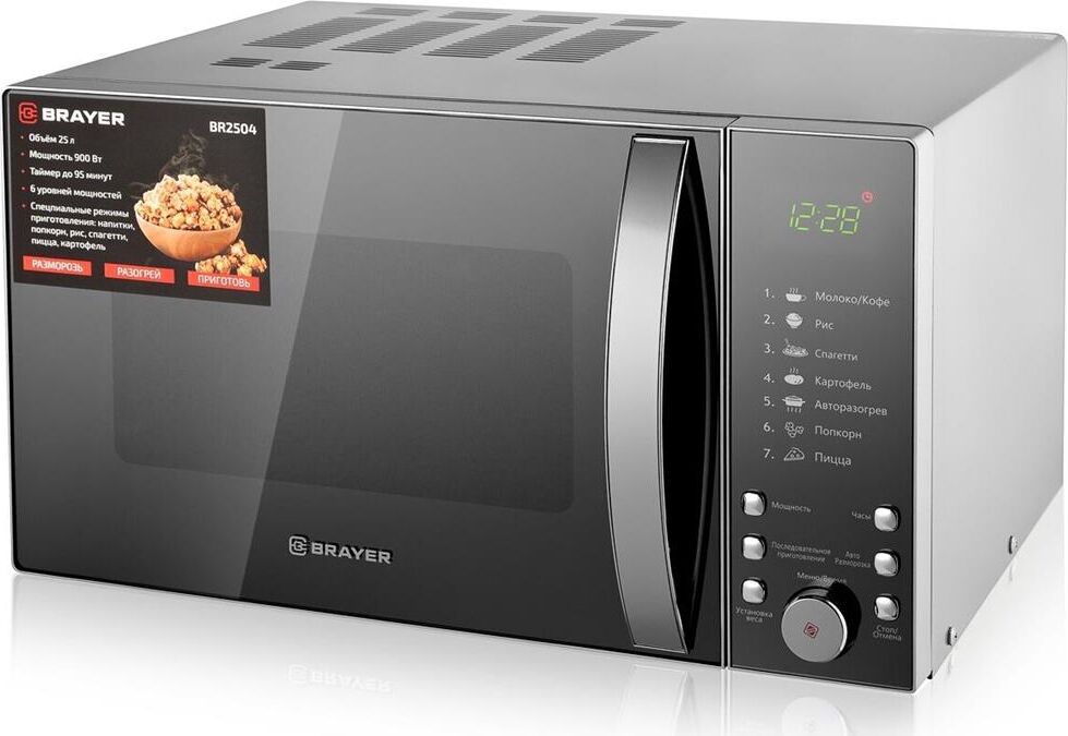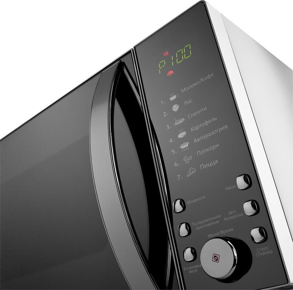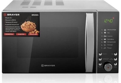 Внутренний объём: 25 л. Номинальная микроволновая мощность: 900 Вт. Цифровое управление. 6 уровней мощности. Авторазморозка. Программирование последовательного приготовления. Блокировка кнопок для безопасности. Автоматическая установка времени приготовления в зависимости от веса продукта. LED-дисплей. Электронные часы. Таймер до 95 минут. Номинальная потребляемая мощность в режиме микроволн: 1400 Вт. Защита от поражения электрическим током: I класс. Рабочая частота: 2450 МГц. Сигнал завершения приготовления. Стеклянное вращающееся блюдо: O 270 мм. Габаритные размеры: 281*483*415 мм. Масса нетто: 13,4 кг. Электропитание: 220-240 В, ~50 Гц.