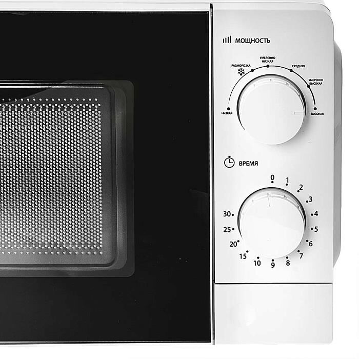 Параметры Номинальная потребляемая мощность 1100 Вт Номинальная выходная мощность 700 Вт Частота микроволн 2450 МГц Внутренний объем 20 л Таймер 30 минут Диаметр вращающегося блюда 245 мм Размеры камеры (В?Ш?Г, мм) 202?301?311 Габаритные размеры (В?Ш?Г, мм) 243?446?332 Вес нетто 9,2 кг Описание Микроволновая печь - электроприбор, предназначенный для приготовления пищи, разогрева и размораживания пищевых продуктов в бытовых и аналогичных условиях Цвет: белый Механический тип управления Открывание дверцы кнопкой Вращающееся стеклянное блюдо диаметром 245 мм Звуковой сигнал окончания приготовления Таймер на 30 минут со звуковым сигналом 6 уровней мощности Режим размораживания