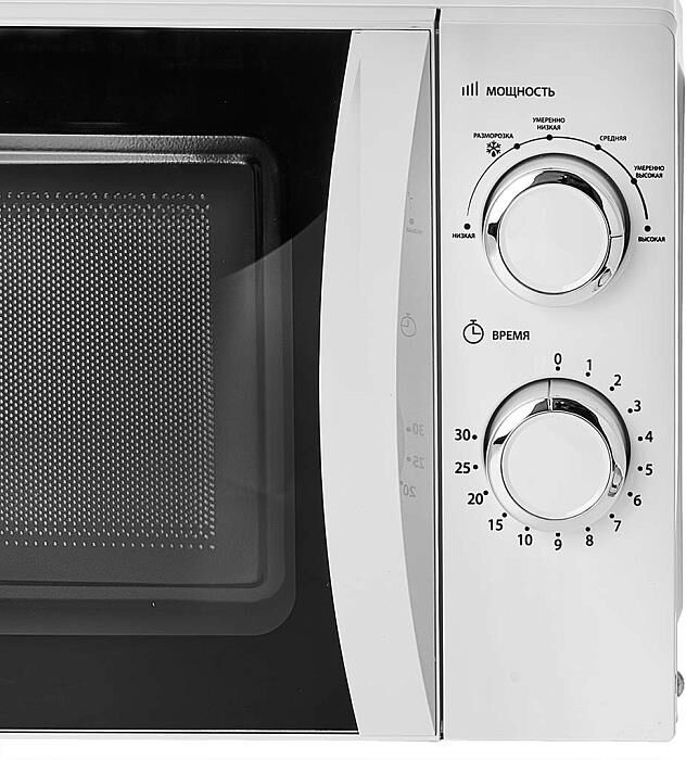 Параметры Номинальная потребляемая мощность 1100 Вт Номинальная выходная мощность 700 Вт Частота микроволн 2450 МГц Внутренний объем 20 л Таймер 30 минут Диаметр вращающегося блюда 245 мм Размеры камеры (В?Ш?Г, мм) 198?315?297 Габаритные размеры (В?Ш?Г, мм) 262?452?360 Вес нетто 10,5 кг Описание Микроволновая печь - электроприбор, предназначенный для приготовления пищи, разогрева и размораживания пищевых продуктов в бытовых и аналогичных условиях Цвет: белый Механический тип управления Открывание дверцы ручкой Вращающееся стеклянное блюдо диаметром 245 мм Звуковой сигнал окончания приготовления Таймер на 30 минут со звуковым сигналом 6 уровней мощности Режим размораживания