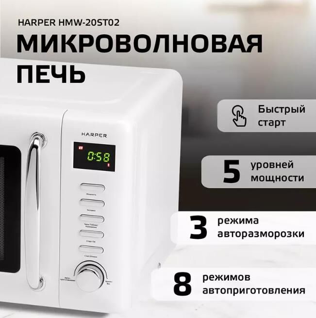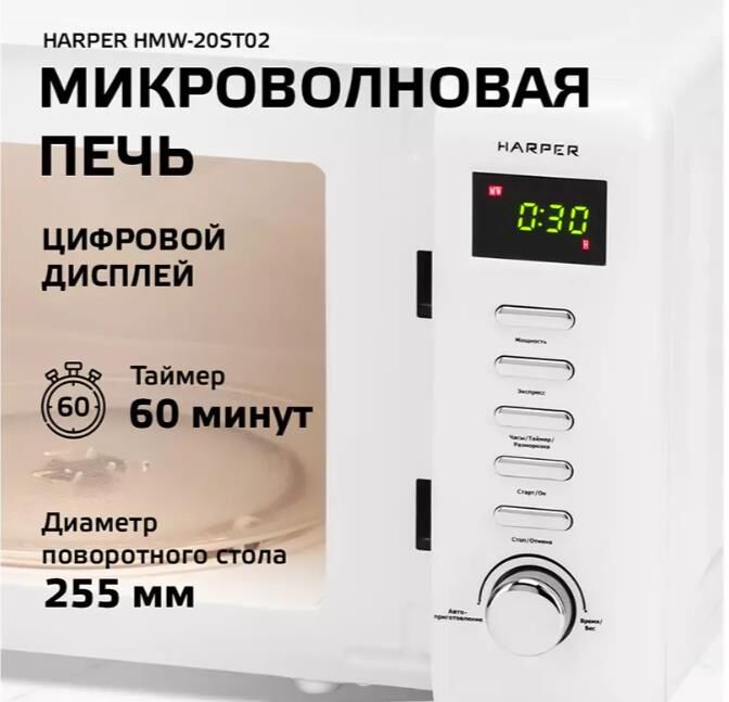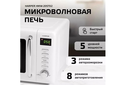 Печь микроволновая соло HARPER HMW-20ST02 WHITE