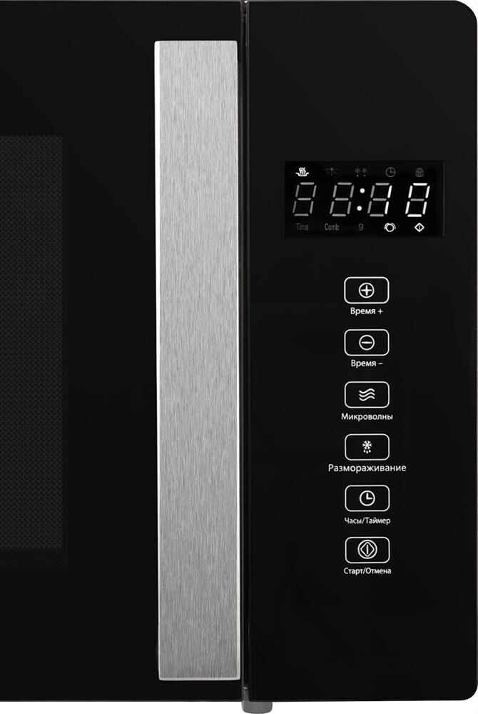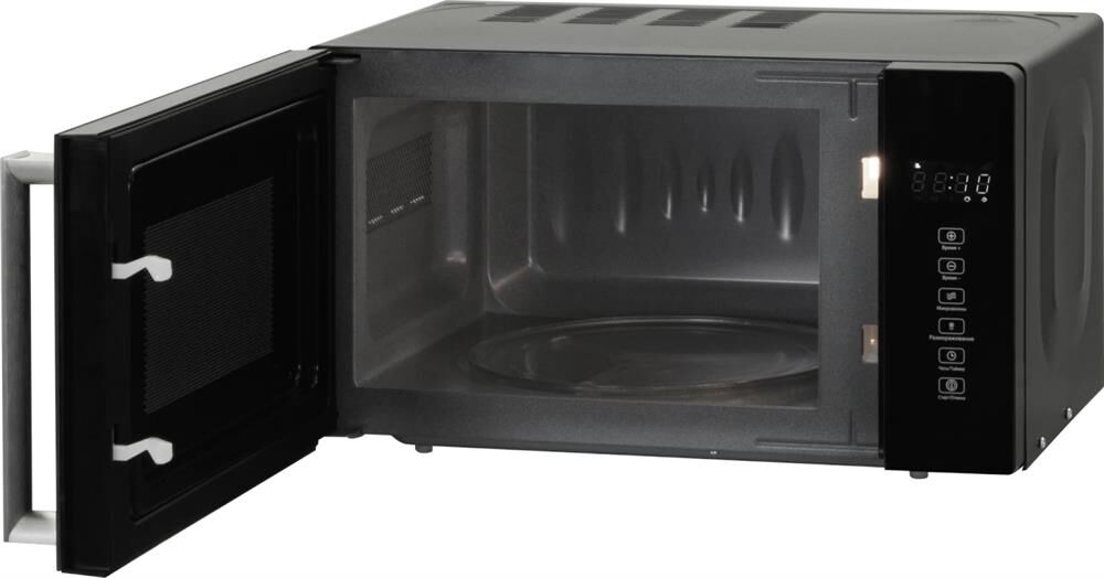 Объем 20 л, Полностью сенсорное управление Touch Control, Мощность микроволн 700 Вт, Дисплей, Часы, Таймер, Разморозка, Звуковой сигнал, Подсветка, Цвет: черный, Ручка: металл, Легкая очистка