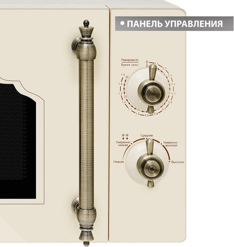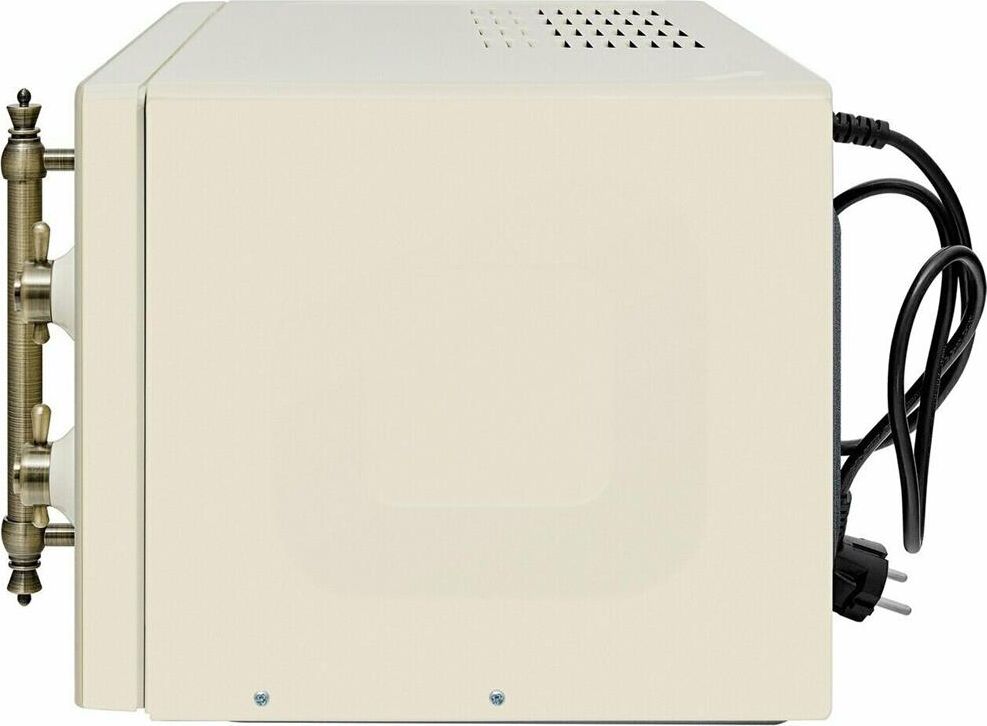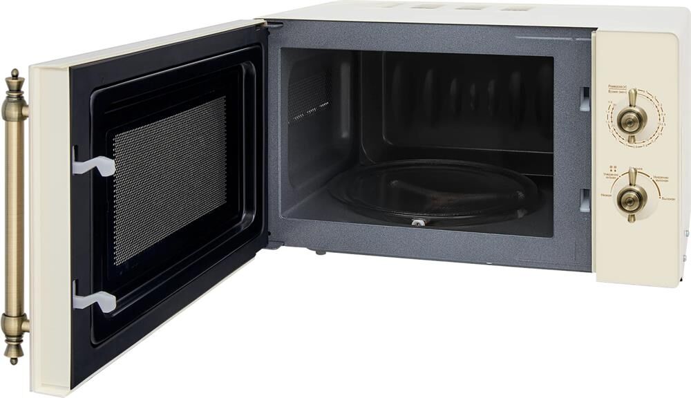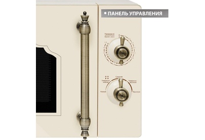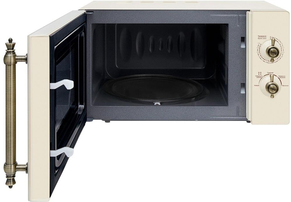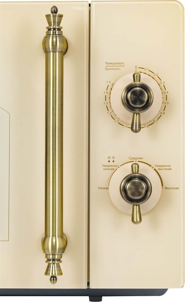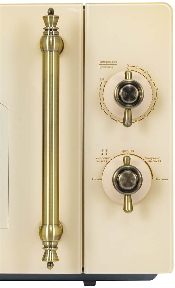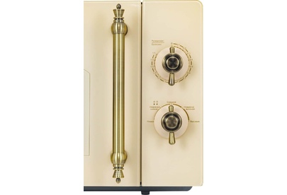 Объем 20 л, Мощность микроволн 700 Вт, Таймер, Разморозка, Звуковой сигнал, Подсветка, Цвет: бежевый, Цвет ручек — бронза, Легкая очистка