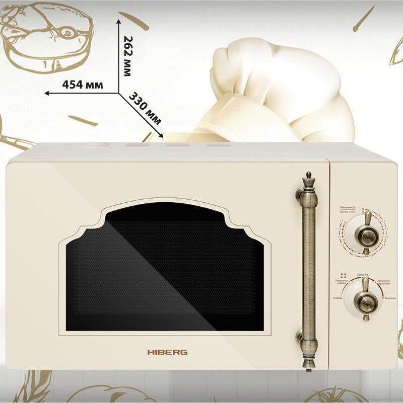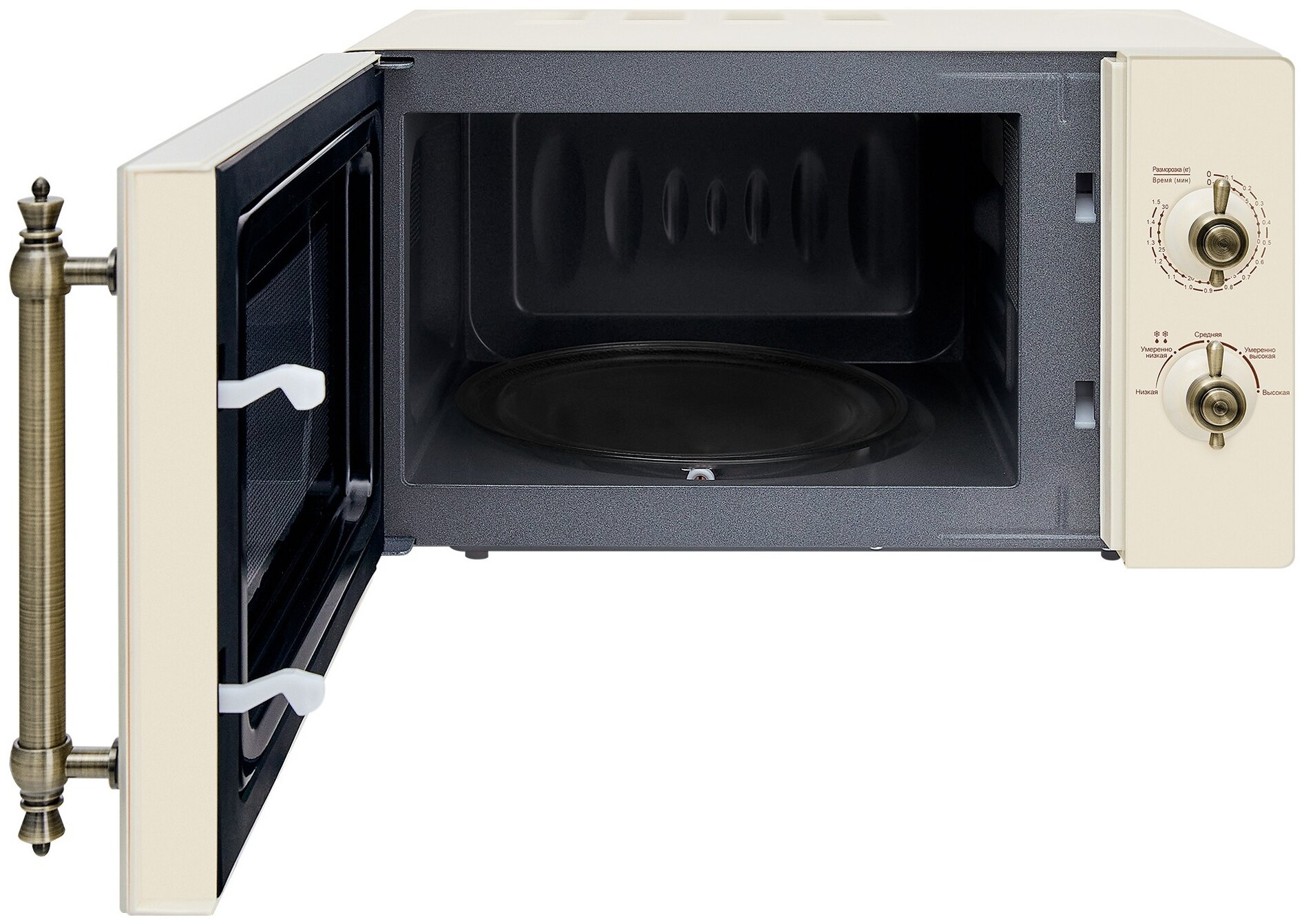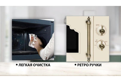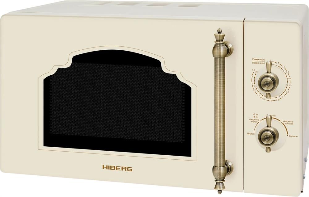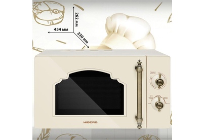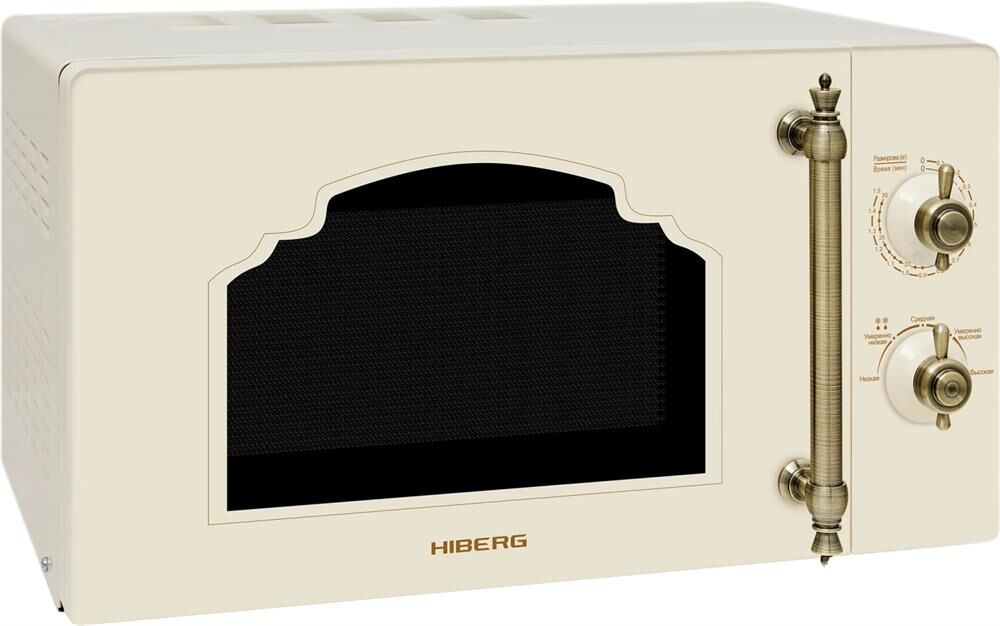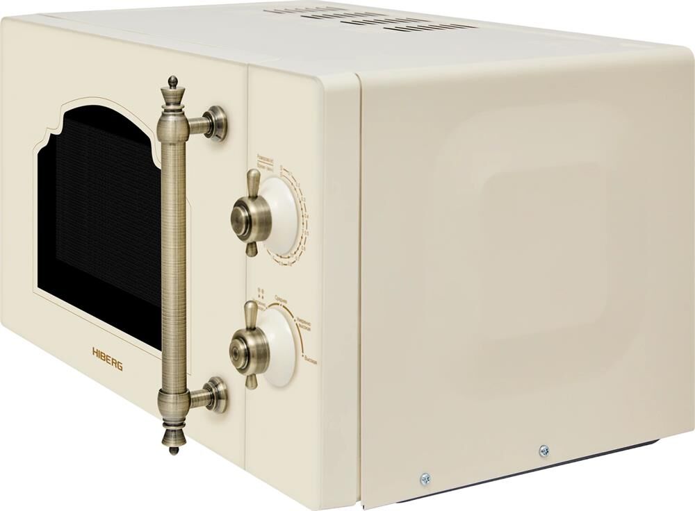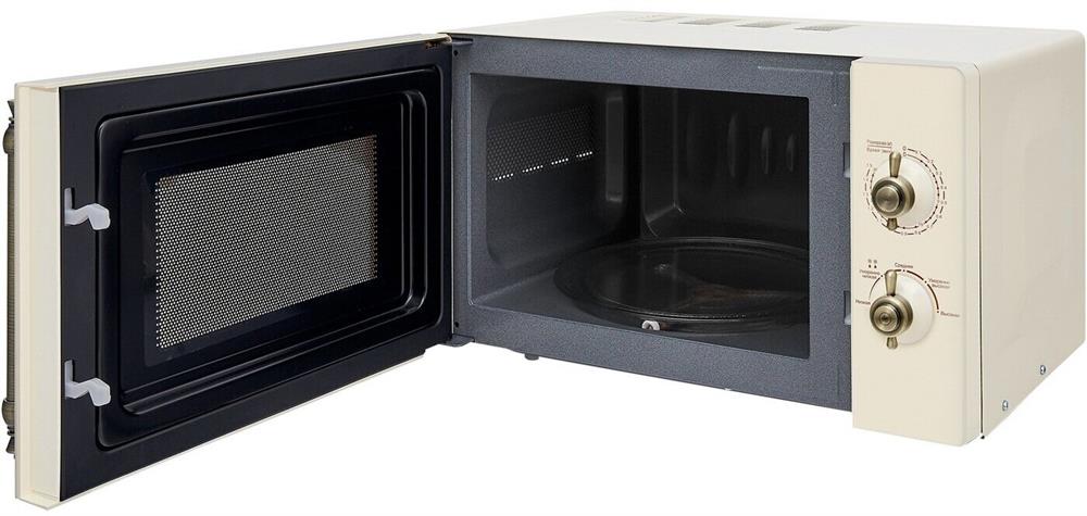 Объем 20 л, Мощность микроволн 700 Вт, Таймер, Разморозка, Звуковой сигнал, Подсветка, Цвет: бежевый, Цвет ручек — бронза, Легкая очистка