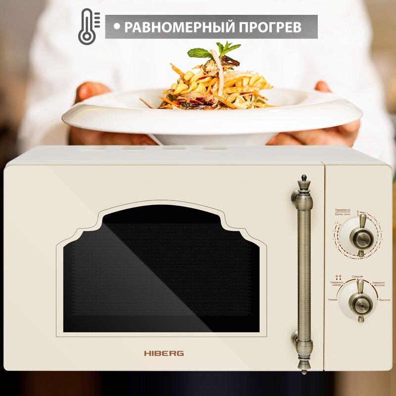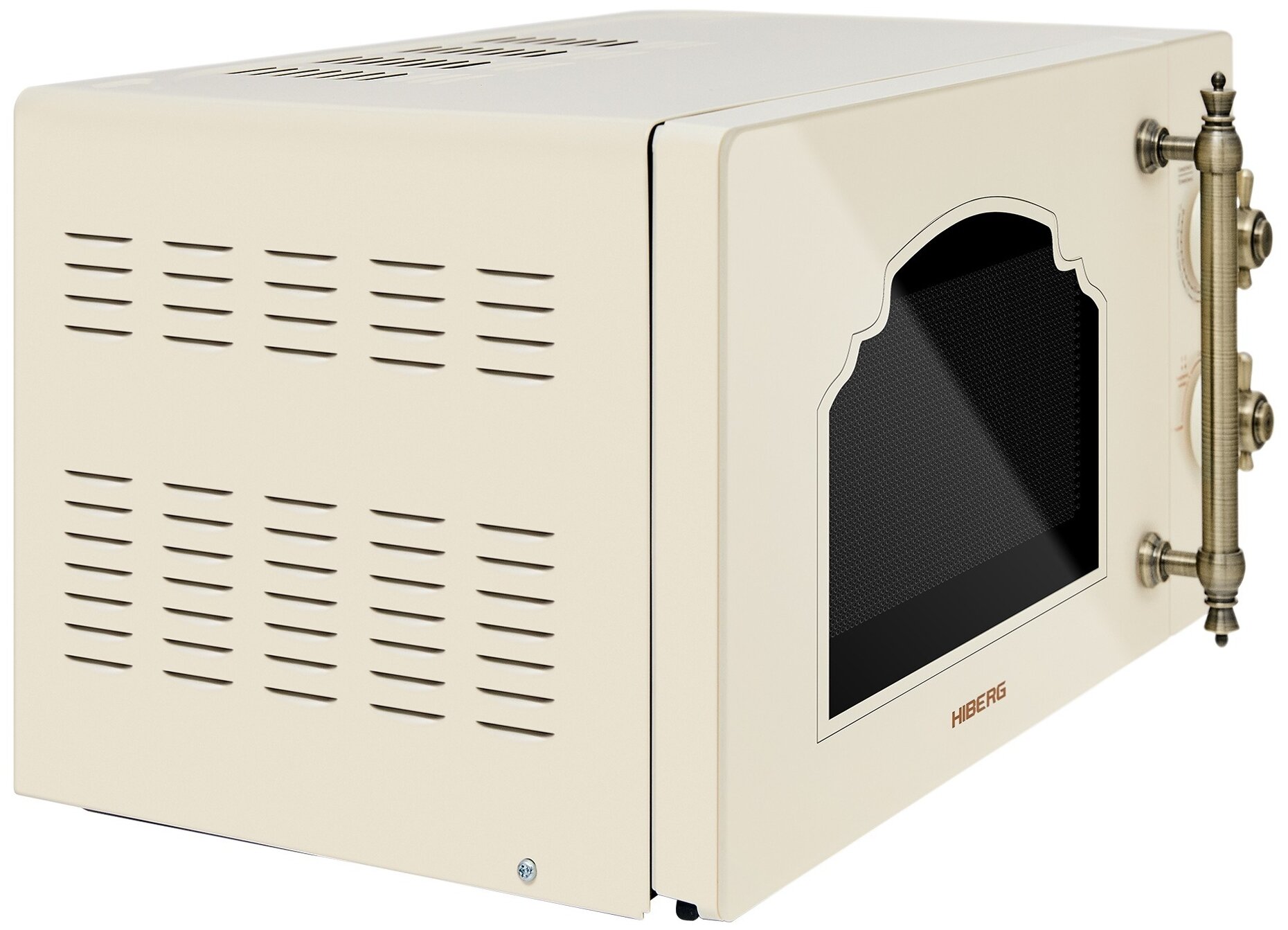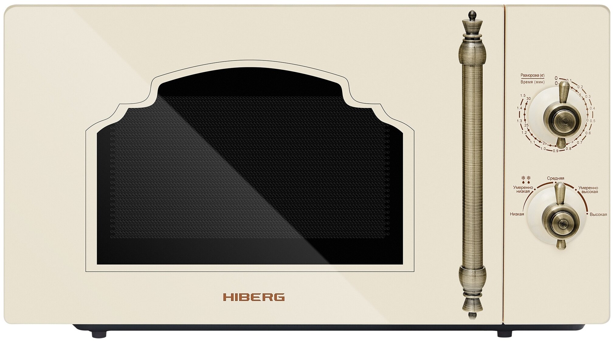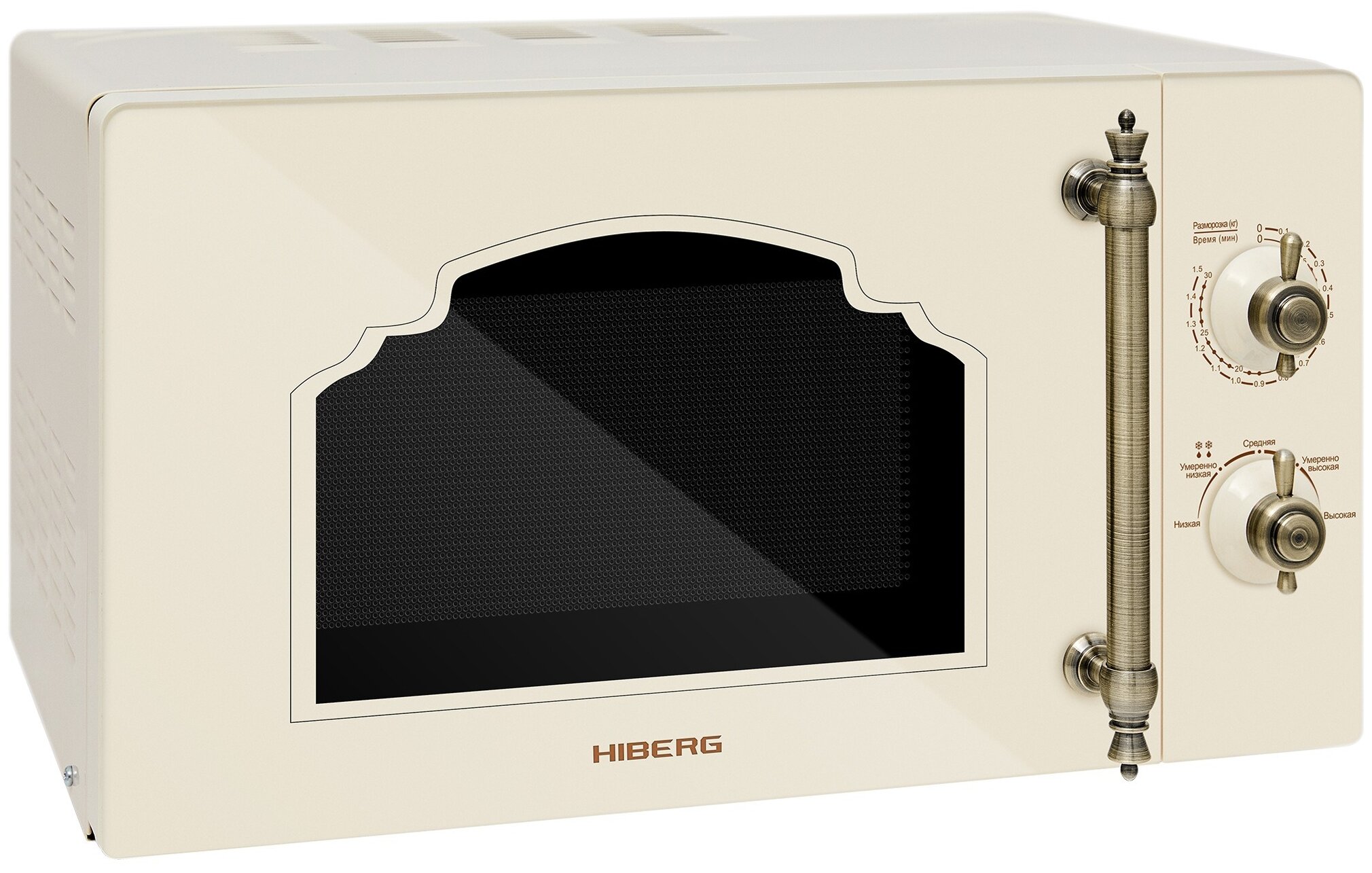 Объем 20 л, Мощность микроволн 700 Вт, Таймер, Разморозка, Звуковой сигнал, Подсветка, Цвет: бежевый, Цвет ручек — бронза, Легкая очистка