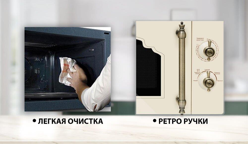входная номинальная микроволновая мощность 1080Вт, ручка ретро, внутреннее освещение есть, поворотный стол (блюдо) есть, материал фасадной панели закаленное стекло, цвет фасада бежевое стекло