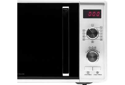 23 Литра, цвет - белый, мощность 800W, 6 автопрограмм, 11 режимов мощности, гриль - 1000Вт, функция разморозки по весу, быстрый старт, таймер. Сенсорное управление. Потребляемая мощность микроволновой печи (Вт) - 1250. Частота - 2450 MHz. Внутренний размер (ВхШхГ) (мм) - 314*347*201, размер коробки - 536*436*330. Вес (n/g) - 14,5кг