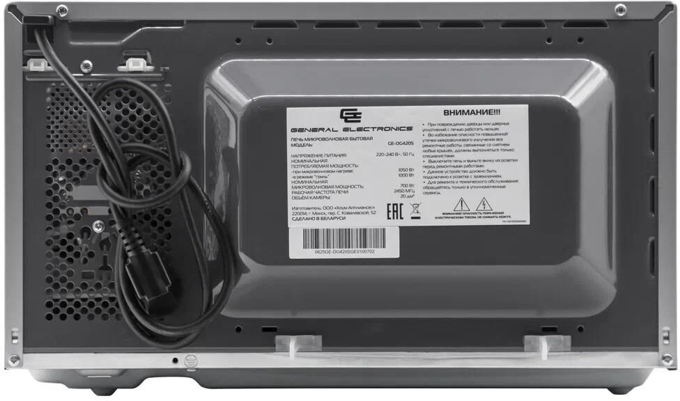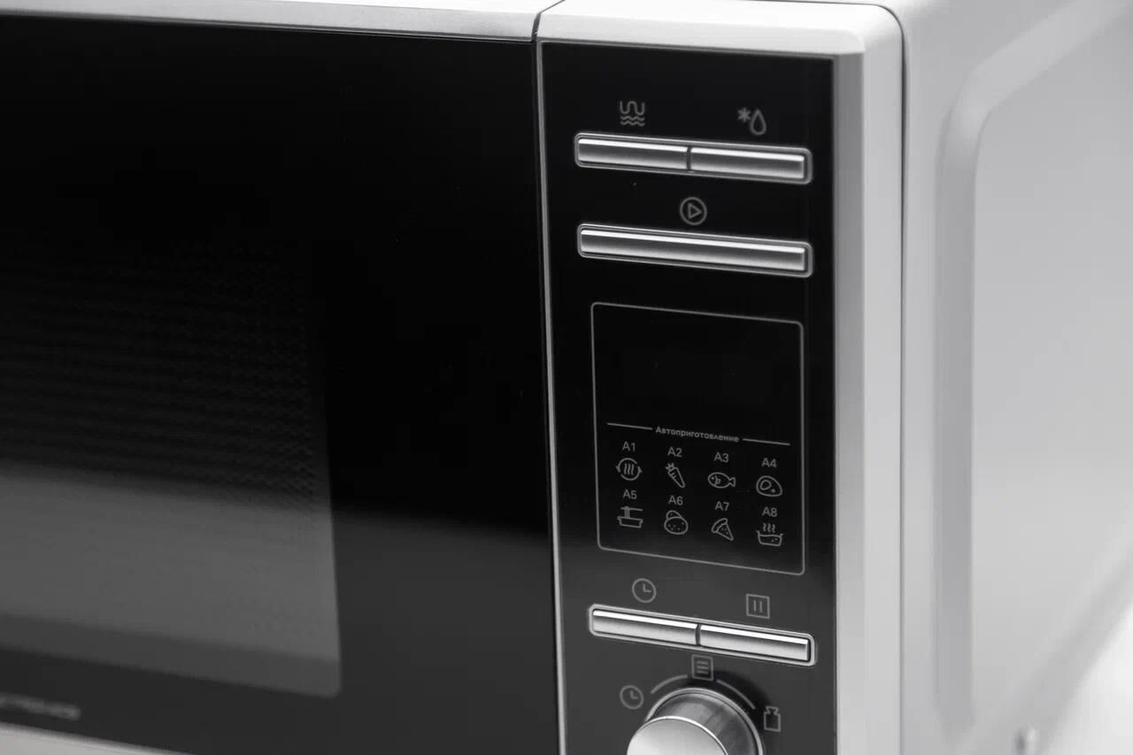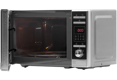 20 Литров, цвет - серебро, мощность 700W, 8 автопрограмм, 5 режимов мощности, гриль - 1000Вт, функция разморозки по весу, быстрый старт, таймер. Сенсорное управление. Потребляемая мощность микроволновой печи (Вт) - 1050. Частота - 2450 MHz. Внутренний размер (ВхШхГ) (мм) - 306*304*206, размер коробки - 488*380*291. Вес (n/g) - 10.3/11.6кг