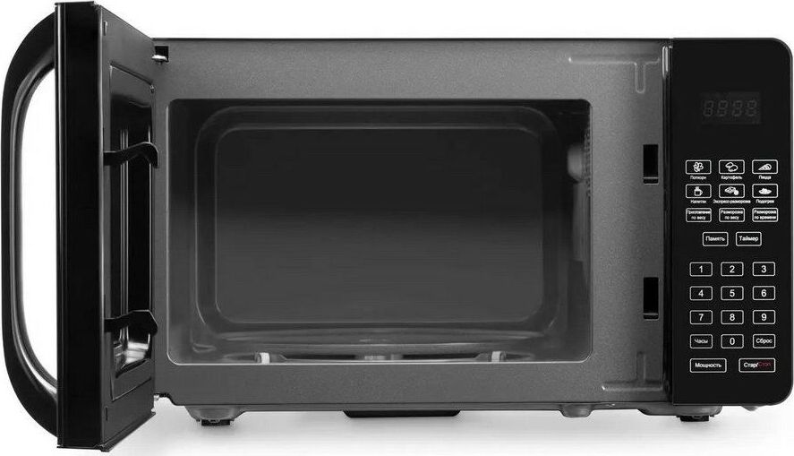 Объем 20 л; Мощность 700 Вт; Механизм открывания дверцы – ручка; Тип управления: электронное; Цвет: черный, инверторное управление мощностью, поворотный стол 245 мм, блокировка от детей; дисплей; зеркальная поверхность