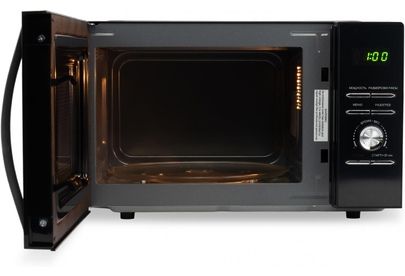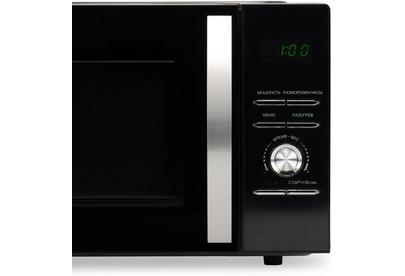 Объем 23 л; Мощность 800 Вт; Механизм открывания дверцы – ручка; Тип управления: электронное; Цвет: черный, Дисплей Диаметр поворотного стола 270 мм Блокировка от детей