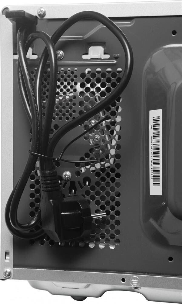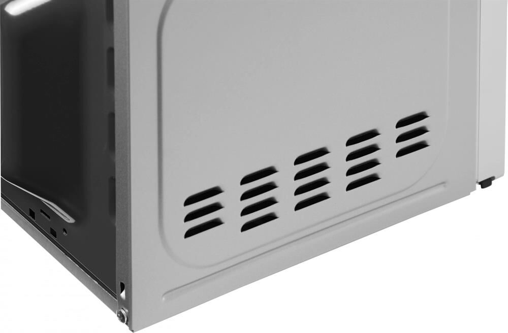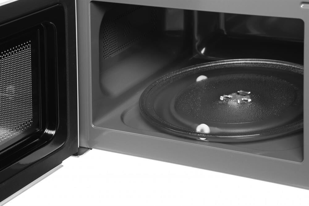 Объем 20 л; Мощность 700 Вт; Максимальное время приготовления 95 мин; Функция разморозки; Защита от детей; Автоменю; Поворотный стол 25,5 см; Механизм открывания дверцы – ручка; Тип управления: электронный; Цвет: серебряный, Зеркальная поверхность дверцы