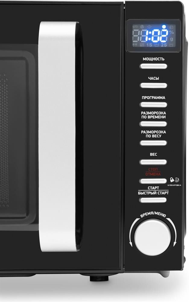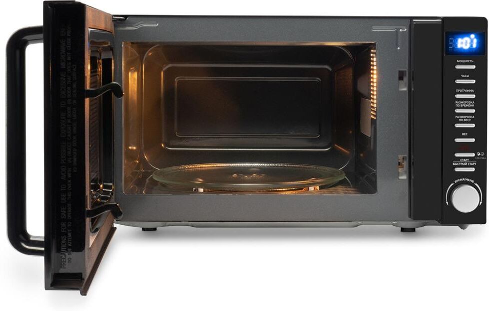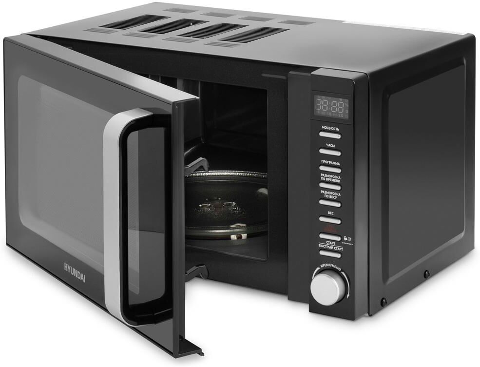 HYUNDAI HYM-D3034 – в невероятно стильном и практичном черном корпусе с хромированной ручкой на дверце. Она прекрасно впишется в любой современный интерьер. Микроволновка обладает вместительной внутренней камерой на 20 л. Этого объема с запасом хватит для приготовления и быстрого разогрева домашних блюд в небольшой семье. Модель оснащена поворотным столиком диаметром 24,5 см, который подойдет и для большой посуды. За счет вращения пища подогревается равномерно. Внутренняя подсветка позволит следить за процессом приготовления еды. Мощность микроволновой печи составляет 700 Вт, предусмотрено пять режимов работы. Модель HYUNDAI HYM-D3034 поможет быстро разморозить продукты, разогреть готовые блюда или приготовить несложные закуски типа печеного картофеля, попкорна или пиццы. Предусмотрен таймер на 99 минут. Он оповестит звуковым сигналом о готовности блюда. Электронная система управления состоит из удобного поворотного переключателя, кнопочного меню с широким функционалом и аккуратного дисплея, на котором легко