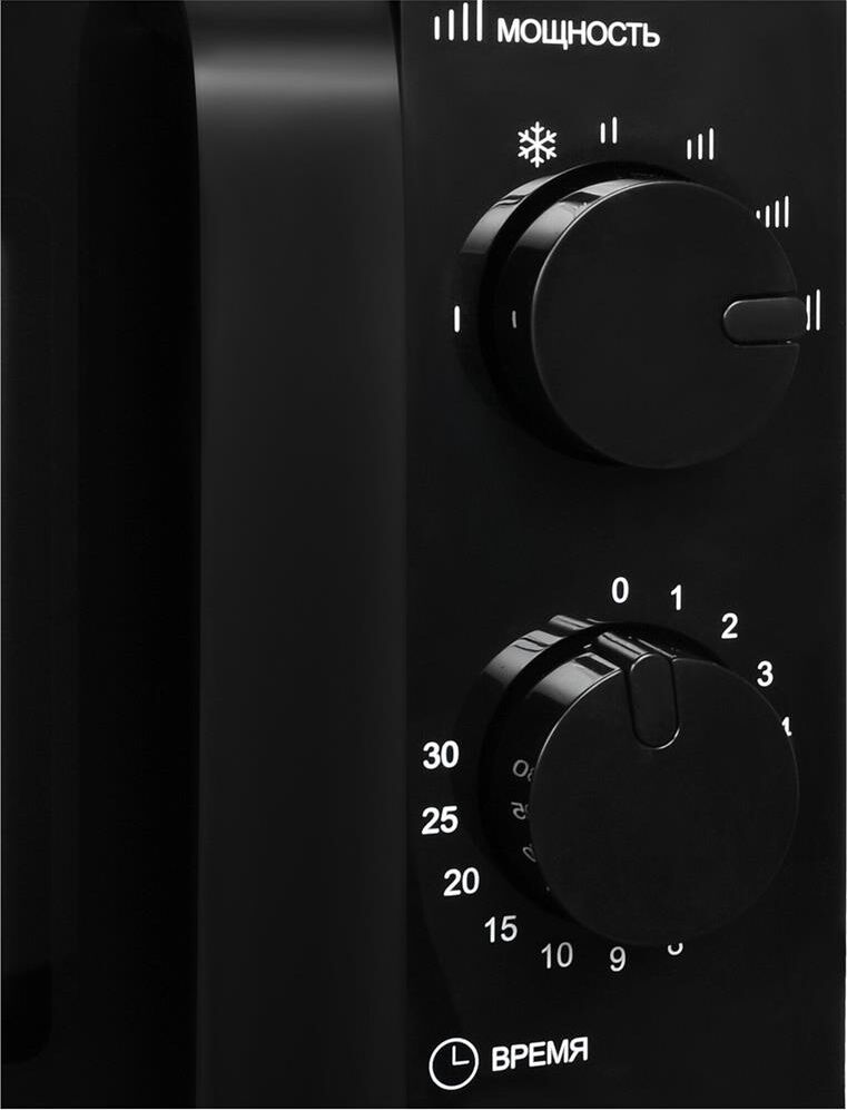СВЧ Hyundai HYM-M2039 предназначена для подогрева пищи и размораживания продуктов. Для управления используются две поворотные ручки механического типа. Верхняя отвечает за установку мощности, нижняя — за время. С помощью простых манипуляций задается нужный режим. При завершении заданного цикла прозвучит звуковой сигнал. Он достаточно приятный, не вызывает отрицательных эмоций. Корпус изделия выполнен из металла и окрашен полностью в черный цвет. Печь выглядит очень стильно. Дверца открывается при помощи ручки. Внутреннее пространство покрыто специальной эмалью, образующей абсолютно гладкую поверхность. С нее легко убирать загрязнения. Поворотный стол изготовлен из стекла, его можно вынимать и мыть. Благодаря компактным размерам прибор не занимает много места при размещении. Устанавливается на устойчивую ровную поверхность. Прорезиненные ножки исключают скольжение.