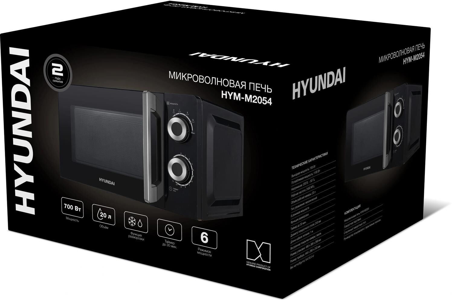 одель HYM-M2054 Объем 20 л Мощностьмикроволн 700 Вт Типуправления механическое Открываниедверцы ручка Диаметр поворотногостола 245 мм Размеры, вес Длина кабеля питания 1.01 м Цвет черный /серебристый Размеры (ШхВхГ) 44.6 х 24.3 х 36.0 см Вес товара 9.4 кг