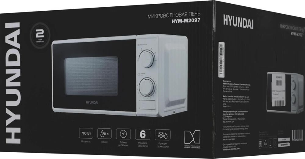 Печь микроволновая соло HYUNDAI HYM-M2097 20л. 700Вт белый