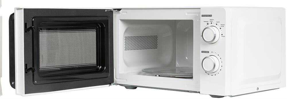Печь микроволновая, объем 20л, выходная мощность 700 Вт, тип управления механический, 6 уровней мощности, разморозка, таймер на 30 минут, диаметр поворотного стола 245 мм, сигнал окончания приготовления.