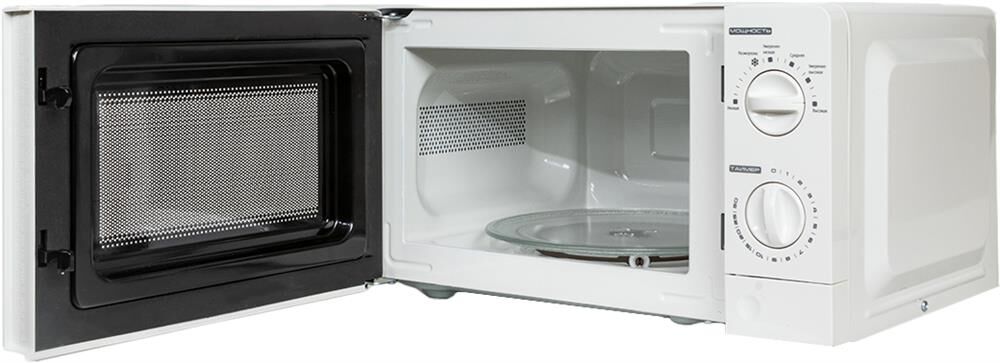 Печь микроволновая, объем 20л, выходная мощность 700 Вт, тип управления механический, 6 уровней мощности, разморозка, таймер на 30 минут, диаметр поворотного стола 245 мм, сигнал окончания приготовления.