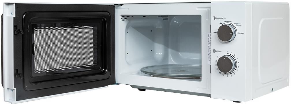 Печь микроволновая, объем 20л, выходная мощность 700 Вт, тип управления: механический, диаметр поворотного стола: 255 мм, количество уровней мощности: 5, автоматическое размораживание, таймер: 35 минут, тип открывания дверцы: ручка, сигнал окончания приготовления, цвет: белый