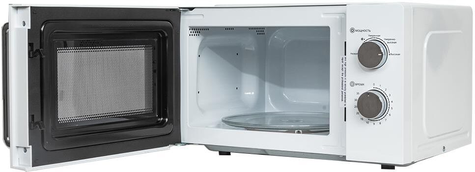 Печь микроволновая, объем 20л, выходная мощность 700 Вт, тип управления: механический, диаметр поворотного стола: 255 мм, количество уровней мощности: 5, автоматическое размораживание, таймер: 35 минут, тип открывания дверцы: ручка, сигнал окончания приготовления, цвет: белый