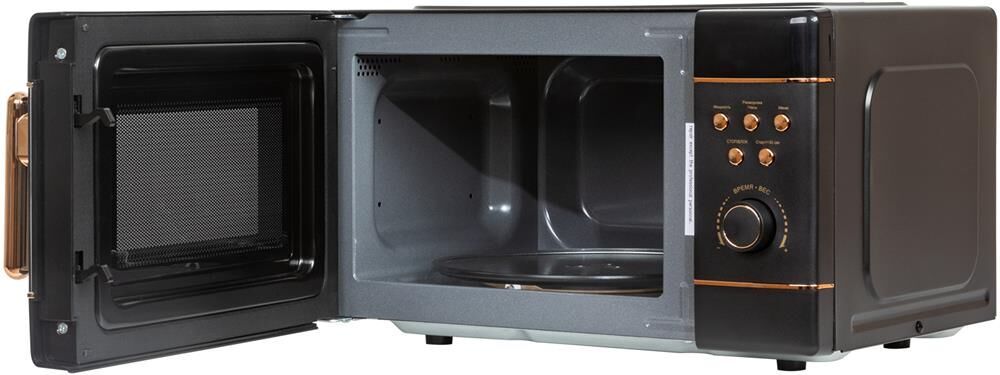Печь микроволновая, объем 20л, выходная мощность 700 Вт, тип управления: цифровой, диаметр поворотного стола: 255 мм, количество уровней мощности: 5, количество программ автоматического приготовления: 8, автоматическое размораживание, таймер: 60 минут, блокировка от детей, тип открывания дверцы: ручка, сигнал окончания приготовления, цвет: черный