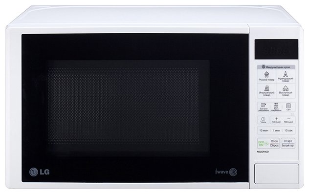 LG MS20R42D СВЧ соло Микроволновая печь, 20 литров Микроволны (Вт) 700, Легкоочищаемое внутреннее покрытие EasyClean* Быстрое и равномерное приготовление с технологией i-Wave** Автопрограммы «Кухни мира» с рецептами итальянских, французских, восточных и русских блюд Экономия электроэнергии с функцией ECO ON***