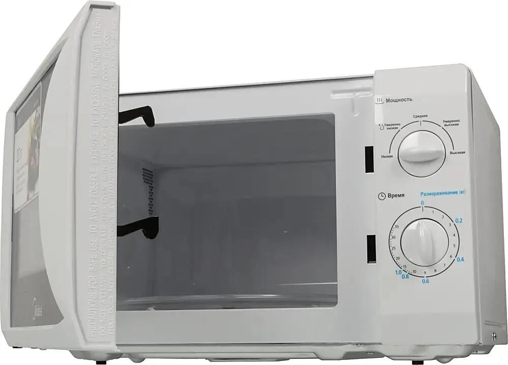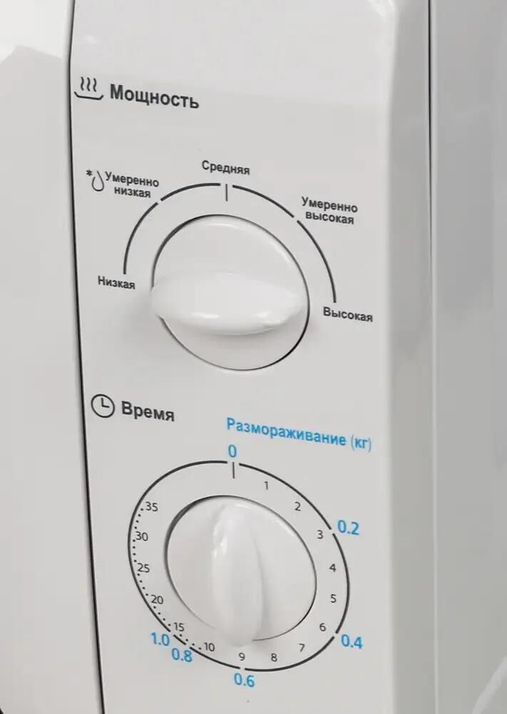 20 л, мощность микроволн 700 Вт, потребляемая мощность 1050 Вт, управление механическое, количество уровней мощности 5, тип открывания двери - ручка, поворотный стол 255 мм, таймер, размораживание по весу, больше / меньше, вес нетто 10,7 кг, размеры внешние (ШxГxВ) 440*345*260 мм.