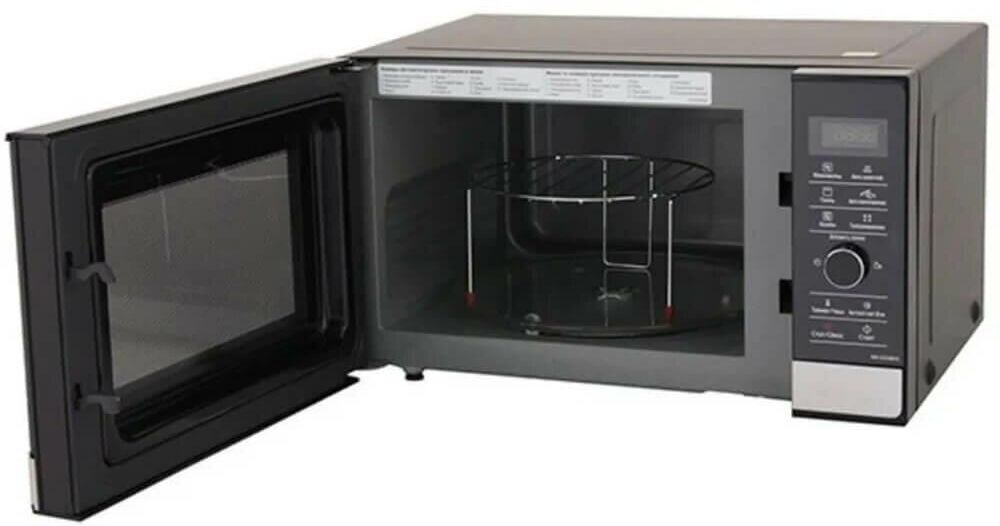 Объем: 23. Мощность микроволн: 1000. Тип управления: электронное. Мощность гриля: 1000. Внутреннее покрытие камеры: эмаль. Вес товара: 10. Тип гриля: кварцевый. Диаметр поворотного стола: 285. Открывание дверцы: кнопка. Особенности: 15 автоматических программ (3 режима разогрева и 12 программ автоприготовления) Инвертор нового поколения. Экономичная и яркая светодиодная подсветка.. Габариты упаковки (ед) ДхШхВ: 0.53x0.43x0.331. Вес упаковки (ед): 11.8. Направление открытия дверцы: справа-налево. Гарантия: 12 мес.. Размеры (ШхВхГ): 48.8 х 27.9 х 39.5 см. Цвет: черный /нержавеющая сталь. Режимы: автоматическая разморозка, автоматическое приготовление, гриль. Комплектация: решетка для гриля. Управление: быстрый старт, кнопка +30 секунд, регулировка мощности. Дополнительные режимы: режим микроволны+гриль, ускоренная разморозка. Функции: блокировка от детей, задержка пуска, инверторное управление мощностью, программирование процесса приготовления. Особенности корпуса: дисплей. Мощность микроволн: 1000 Вт. Объем: 2