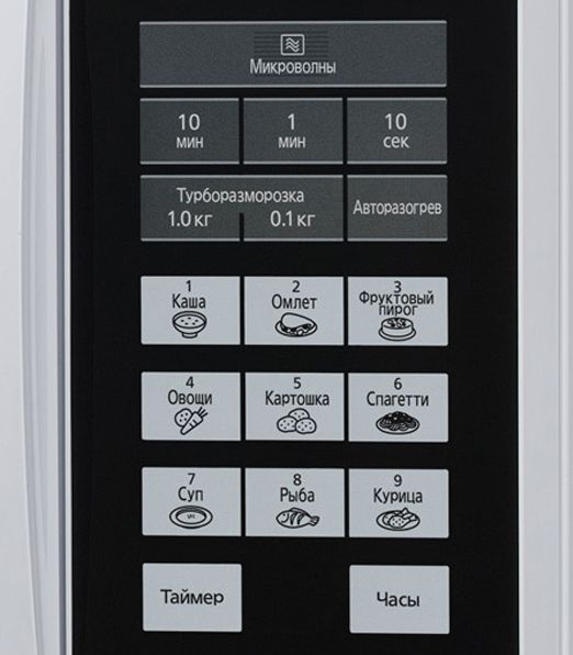 соло (без гриля и конвекции), объем 25 л, мощность микроволн 800 Вт, электронное управление, автоматические режимы: разморозка, приготовление, размеры (ШxВxГ): 48.5x28.7x40 Цвет серебритый.