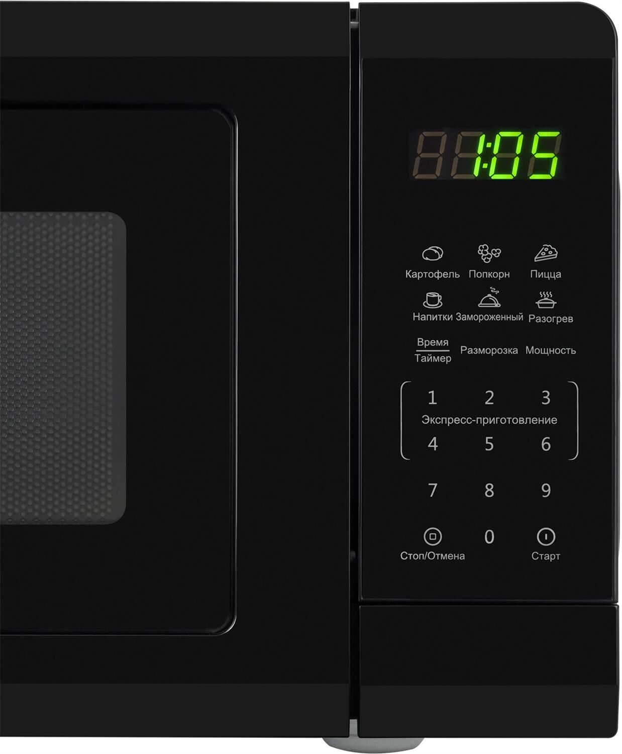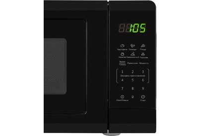Мощность микроволн 700 Вт Объем 20л 11 уровней мощности Электронное управление Наличие дисплея Автоматическая разморозка Экспресс-режим приготовления Блокировка от детей Цвет черный Срок гарантии 12 мес