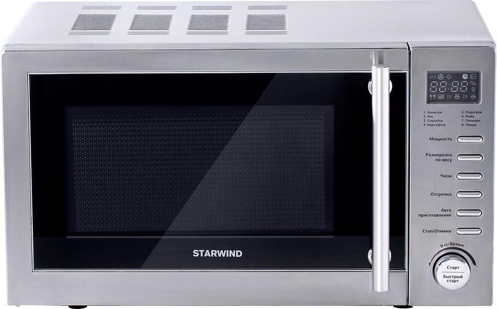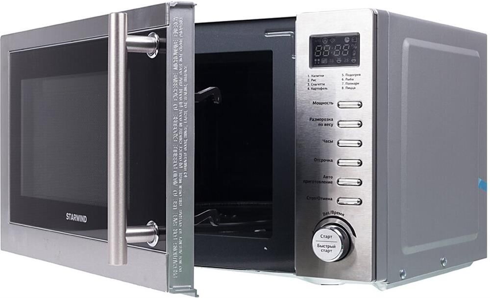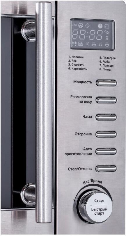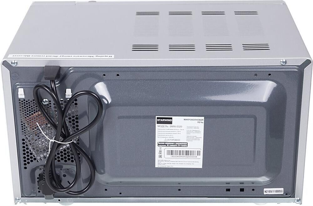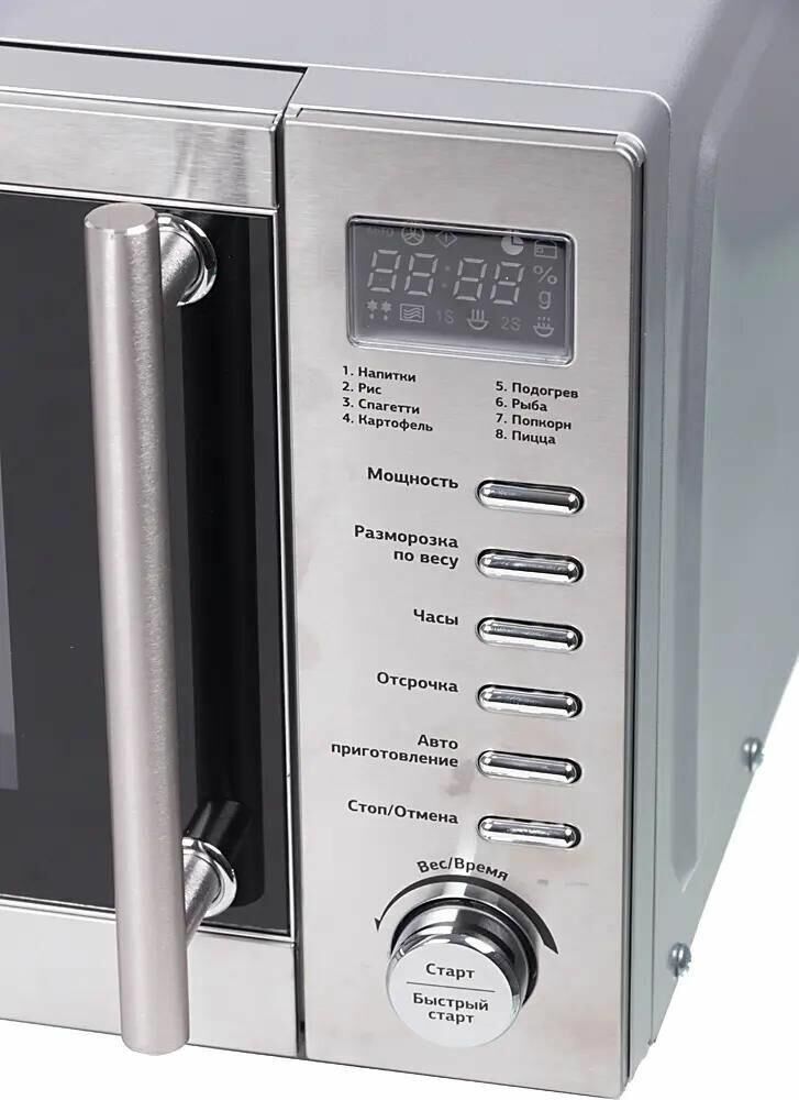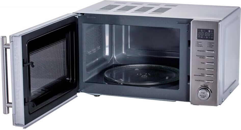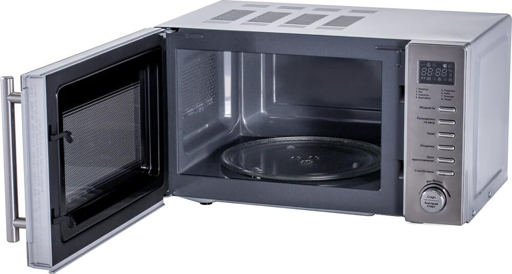 Мощность микроволн 700 Вт Объем 20 л 6 уровней мощности Электронное управление Наличие дисплея с часами Внутреннее покрытие камеры - эмаль Автоматическая разморозка Экспресс-режим приготовления Блокировка от детей Цвет серый/серебристый Срок гарантии 12 мес