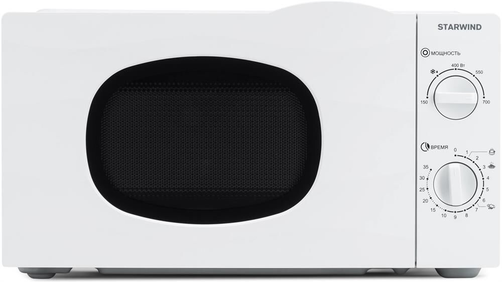 Объем 20 л; Мощность 700 Вт; Сигнал об окончании готовки; Тип управления: механический; Регулировка мощности; Таймер на отключение, максимальное время 35 мин; Автоматическая разморозка; Цвет: белый