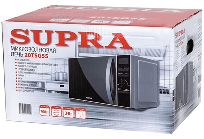 SUPRA 20TSG55 Внутренний объем, л 20 Максимальная мощность микроволн, Вт 700 Тип управления электронное Внутреннее покрытие камеры жаропрочная эмаль Открывание дверцы налево Тип открывания ручка Блокировка от детей есть Таймер есть Количество уровней мощности 5 Количество автоматических программ 12 Функции Автоматическое размораживание есть Гриль есть Мощность гриля, Вт 900 Часы есть Индикация Дисплей есть Часы есть Звуковой сигнал завершения работы есть Комплектация Комплектация микроволновая печь, роликовая подставка, стеклянный поддон, гарантийный талон, инструкция на русском языке Корпус Материал корпуса металл Энергопотребление Электропитание, в., Гц. 220-240, 50