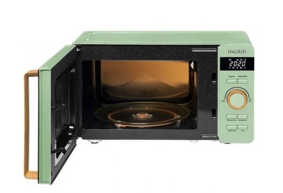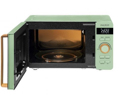 (ШхВхГ):45,1х25,7х35,4 см.Цвет зеленый.Объем: 20 л.Потребляемая мощность: 1150 Вт.Мощность микроволн: 700 Вт.Тип управления: электронный.Тип открывания дверцы: декоративная ручка.Цифровой дисплей.Подсветка камеры.Количество уровней мощности: 8 автопрограмм.Таймер: 60 мин.Звуковой сигнал отключения: да.Режим разморозки.Блокировка от детей.