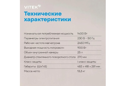 Печь микроволновая соло VITEK VT-MW1425 25л. 900Вт черный