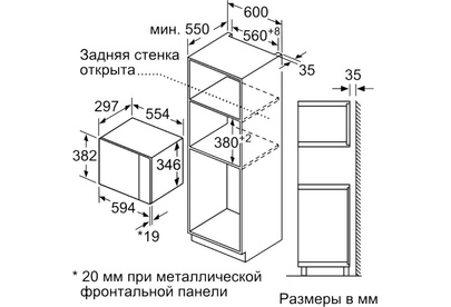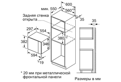 Размеры прибора 382 x 594 x 317 мм.Обьем духовки 20 л.Вес нетто (кг)16,658 кг. Материал духовки нержавеющая сталь.Цвет фронтальной панели Нержавеющая сталь.Тип конструкции Встроенный.Управление механический.Открытие двери Кнопка.Материал смотрового окошка стекло.Управляющие элементы Поворотный переключатель.Встроенная микроволновая печь в нишу 38 см: с функцией оттаивания, подогрева и идеального приготовления пищи.Микроволновая печь: экономия времени приготовления, разморозки и повторного нагрева посуды.