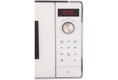 Объем: 20. Мощность микроволн: 800. Тип управления: электронное. Открывание дверцы: кнопка. Направление открытия дверцы: справа-налево. Внутреннее покрытие камеры: нержавеющая сталь. Диаметр поворотного стола: 270. Тип гриля: кварцевый. Цвет корпуса: белый. Габариты упаковки (ед) ДхШхВ: 0.68x0.4x0.44. Вес упаковки (ед): 15. Длина кабеля питания: 1.3. Внутреннее освещение: есть. Количество программ: 8. Количество ступеней регулировки мощности: 5. Гарантия: 12 мес.. Размеры (ШхВхГ): 59.5 х 38.2 х 31.5 см. Размеры ниши (ШхВхГ): 56 х 36.2 х 32 см. Комплектация: решетка для гриля. Дополнительные режимы: режим микроволны+гриль, ускоренная разморозка. Особенности корпуса: дисплей, часы. Режимы: автоматическая разморозка, автоматический разогрев, автоматическое приготовление, гриль. Особенности управления: регулировка мощности. Функции: блокировка от детей. Мощность: 800 Вт. Тип управления: электронное, открывание дверцы: кнопка. Функции: блокировка от детей. Объем: 20 л, покрытие нержавеющая сталь. Размеры (ШхВхГ):