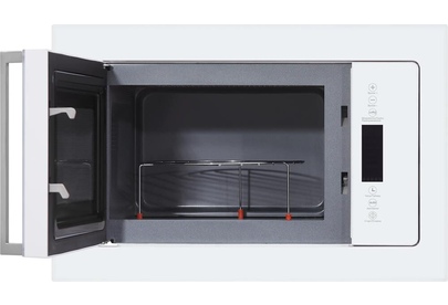 Мощность (Вт): 1400, Объем (л): 25, Тип управления: сенсорное, Дисплей: Да, Гриль: Да; Керамическое дно; Без поворотного стола; Ручка: серебристый металл; Цвет: белое стекло