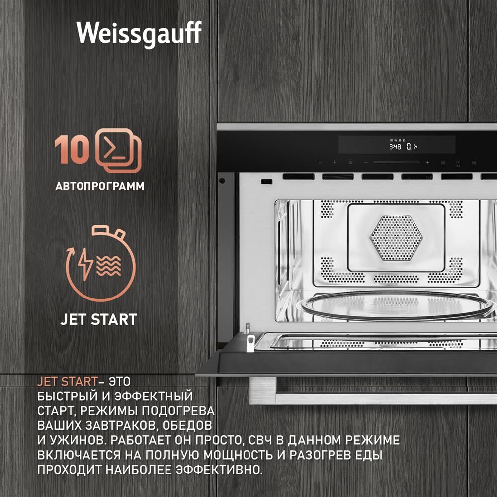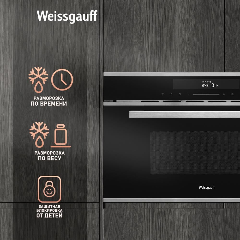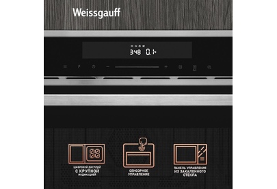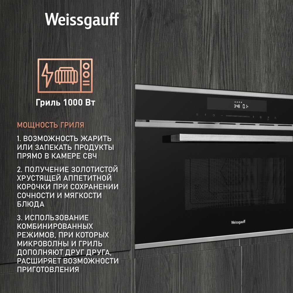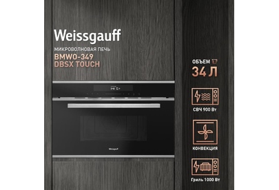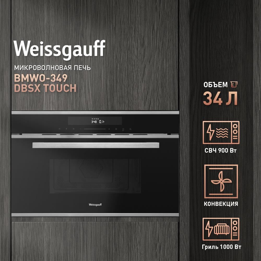 Печь микроволновая встраиваемая WEISSGAUFF Встраиваемая микроволновая печь Premium BMWO-349 DBSX Touch, 34л, 900Вт, черный [430203]