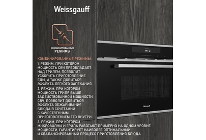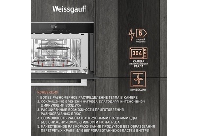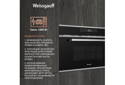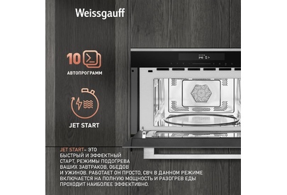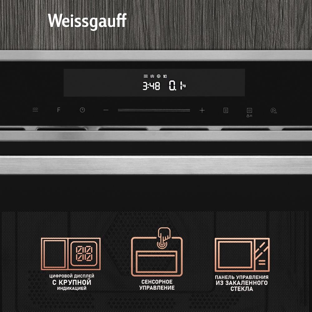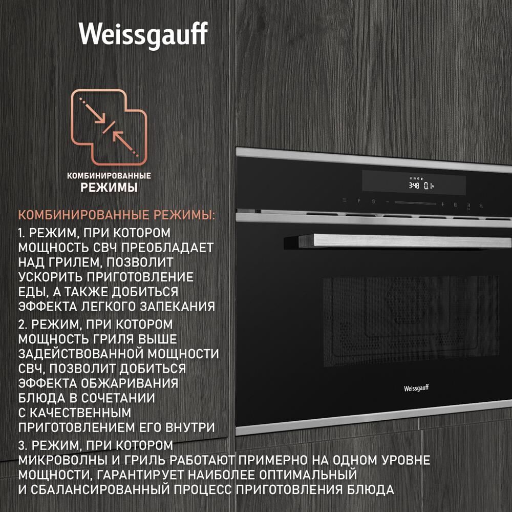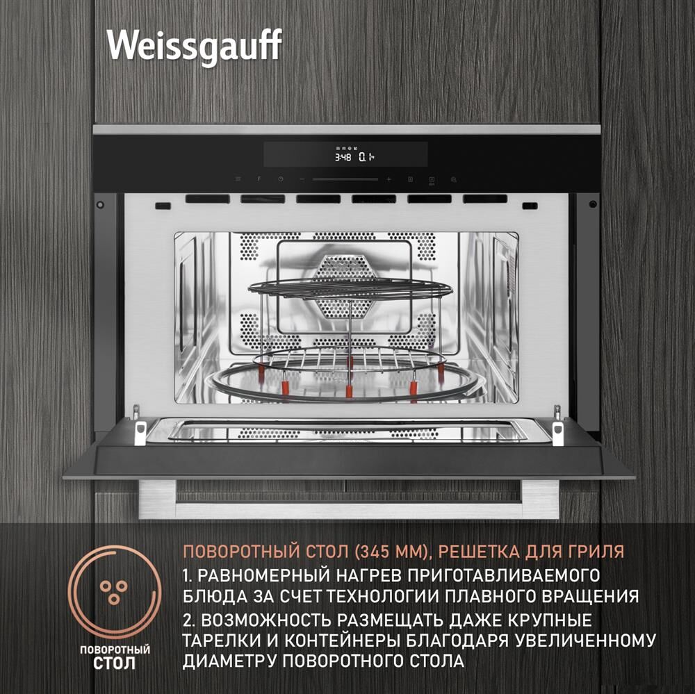 Печь микроволновая встраиваемая WEISSGAUFF Встраиваемая микроволновая печь Premium BMWO-349 DBSX Touch, 34л, 900Вт, черный [430203]