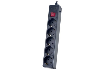 Сетевой фильтр, ДВОЙНАЯ СИСТЕМА ЗАЩИТЫ, количество розеток - 5 (евростандарт с заземлением), номинальное входное напряжение 220В, суммарная мощность нагрузки - 2.3 кВт, ток срабатывания защиты~10 А при 220 В, рабочая частота 50/60 Гц , автоматический предохранитель, ударопрочный корпус, длина кабеля - 1,8 м.