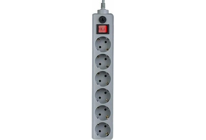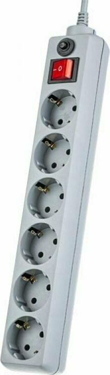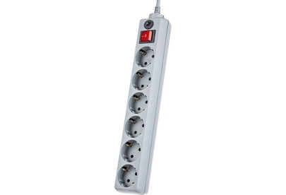 Cетевой фильтр, количество розеток - 6 (евростандарт с заземлением), номинальный ток нагрузки - 10А, номинальное входное напряжение - 220В, корпус из ударопрочного негорючего материала, длина кабеля - 1,8 м.
